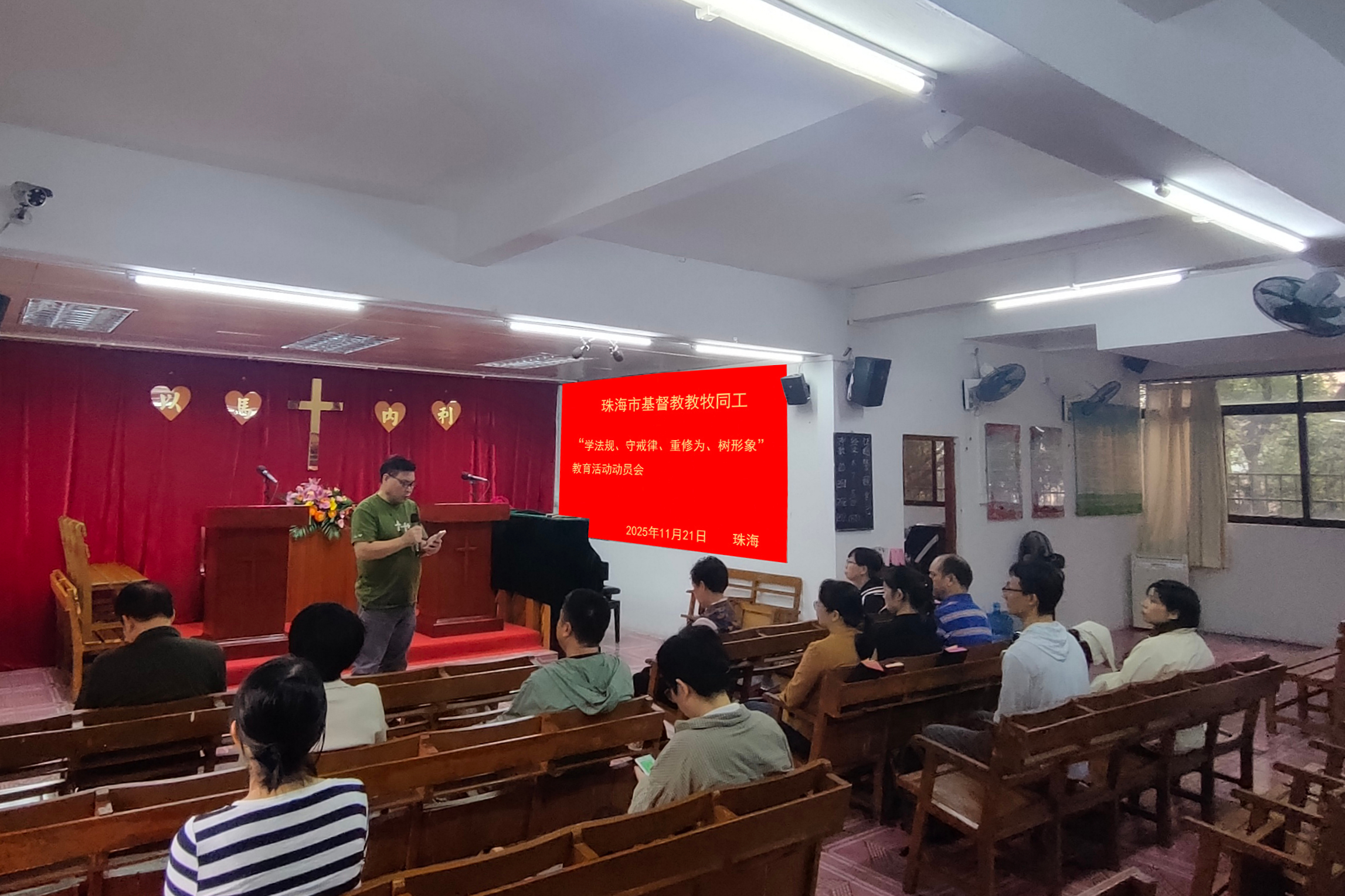 11月21日,珠海市基督教两会在斗门区井岸堂召开“学法规、守戒律、重修为、树形象”教育活动动员会。全市教牧同工参会。
