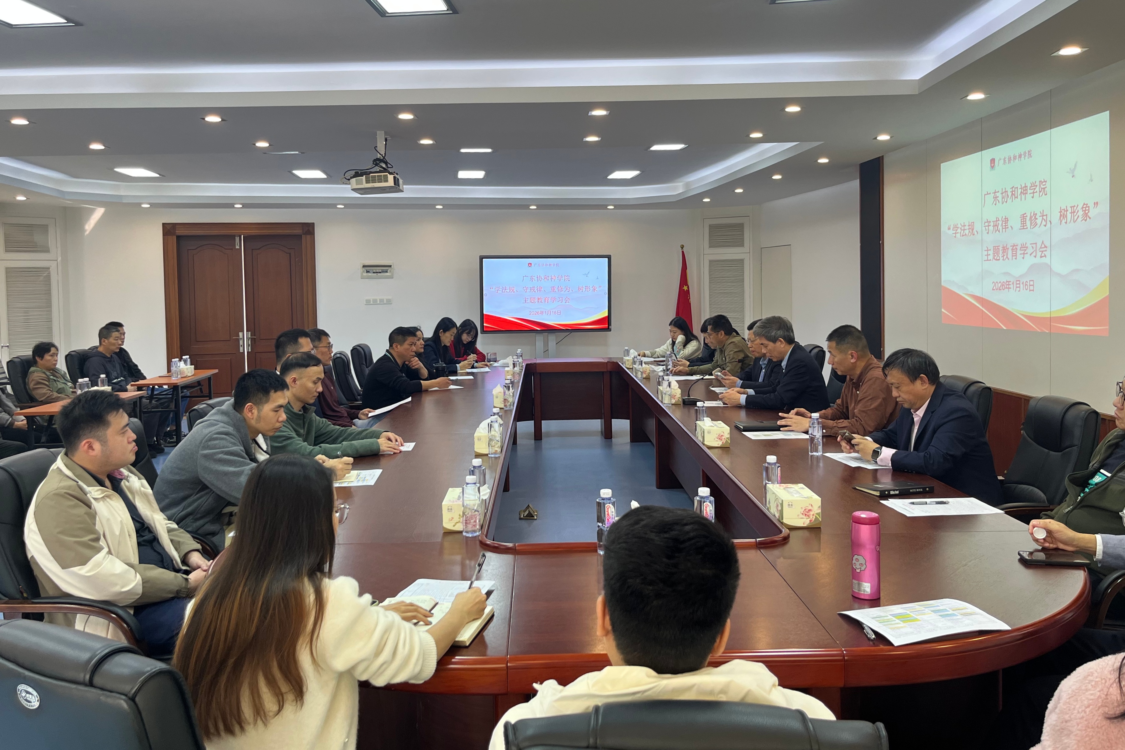 1月16日下午,广东协和神学院举办“学法规、守戒律、重修为、树形象”教育活动学习会暨全体教职员工会议。