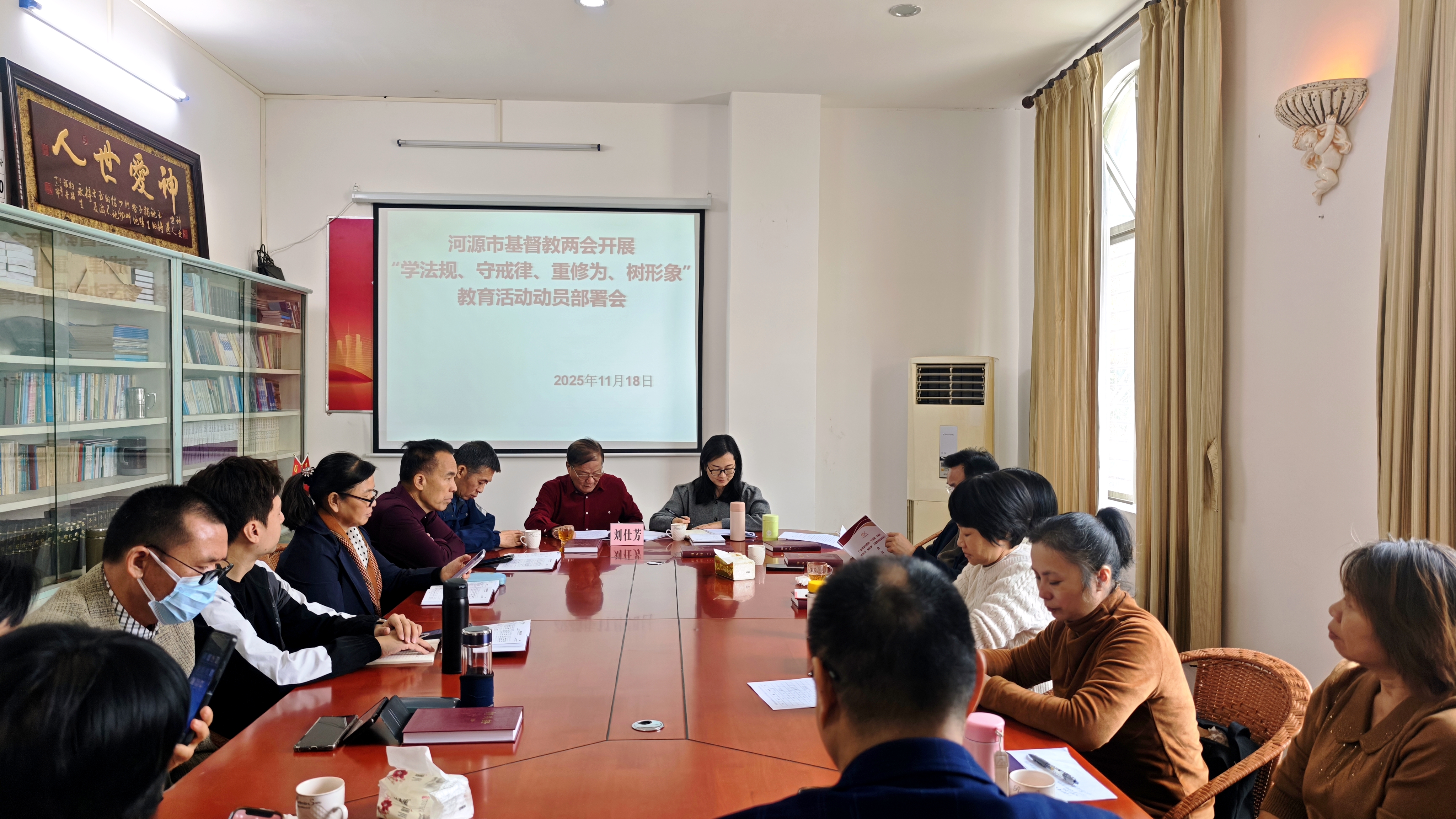 随后,召开“学法规、守戒律、重修为、树形象”教育活动动员布署会,成立工作专班,由河源市基督教三自爱国会主席刘仕芳牧师担任组长,副主席担任副组长,组员为全体常务委员会成员。