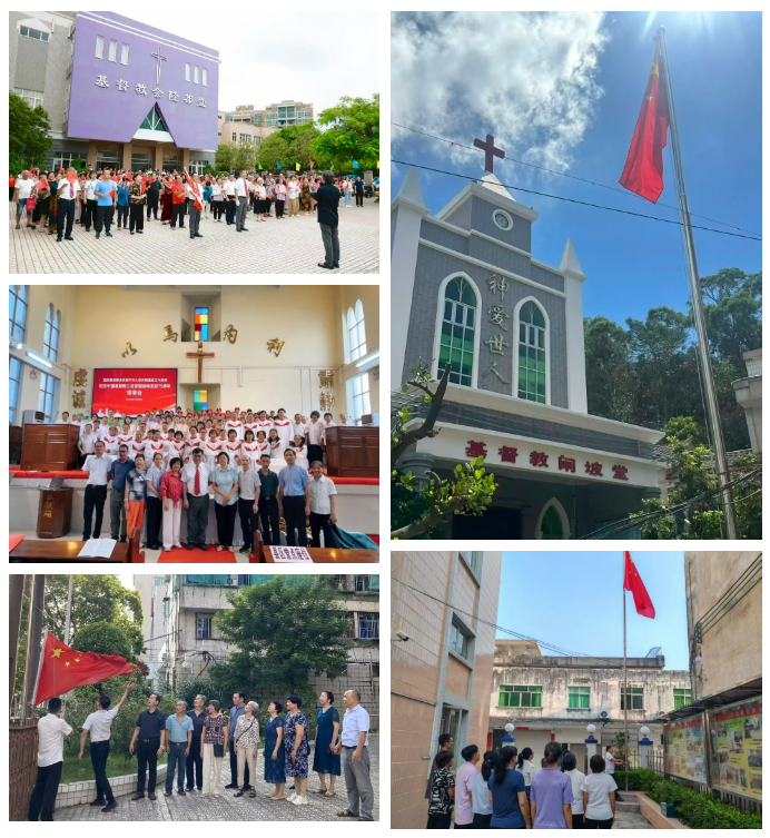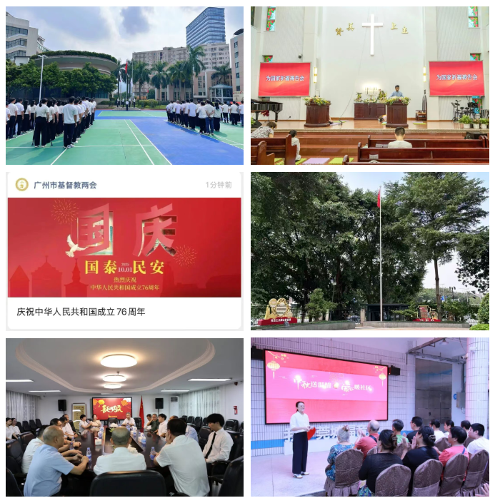 2025年国庆期间,广东省广州、深圳、韶关、东莞、中山、阳江、潮州、云浮等地基督教界及省基督教两会直属堂、重点场所、广东协和神学院庄严举行升国旗仪式,并组织开展系列爱国爱教实践活动。活动内容丰富、形式多样,全省各地基督教堂点除举行隆重的升旗仪式,还通过悬挂国旗、开展爱国主题宣传等方式,积极营造庄严喜庆、文明和谐的节日氛围。各地还开展了专题学习座谈会、祈祷会、音乐会、书画创作、社区慰问等主题活动,深入学习中央政治局关于宗教工作的重要会议精神,研讨推进我国基督教中国化的实践路径,进一步凝聚思想共识;并为国家繁荣、社会和谐、民族复兴虔诚祝祷,抒发对伟大祖国的崇高敬意和美好祝福,表达广东省基督教界与祖国同心同行的坚定信念。