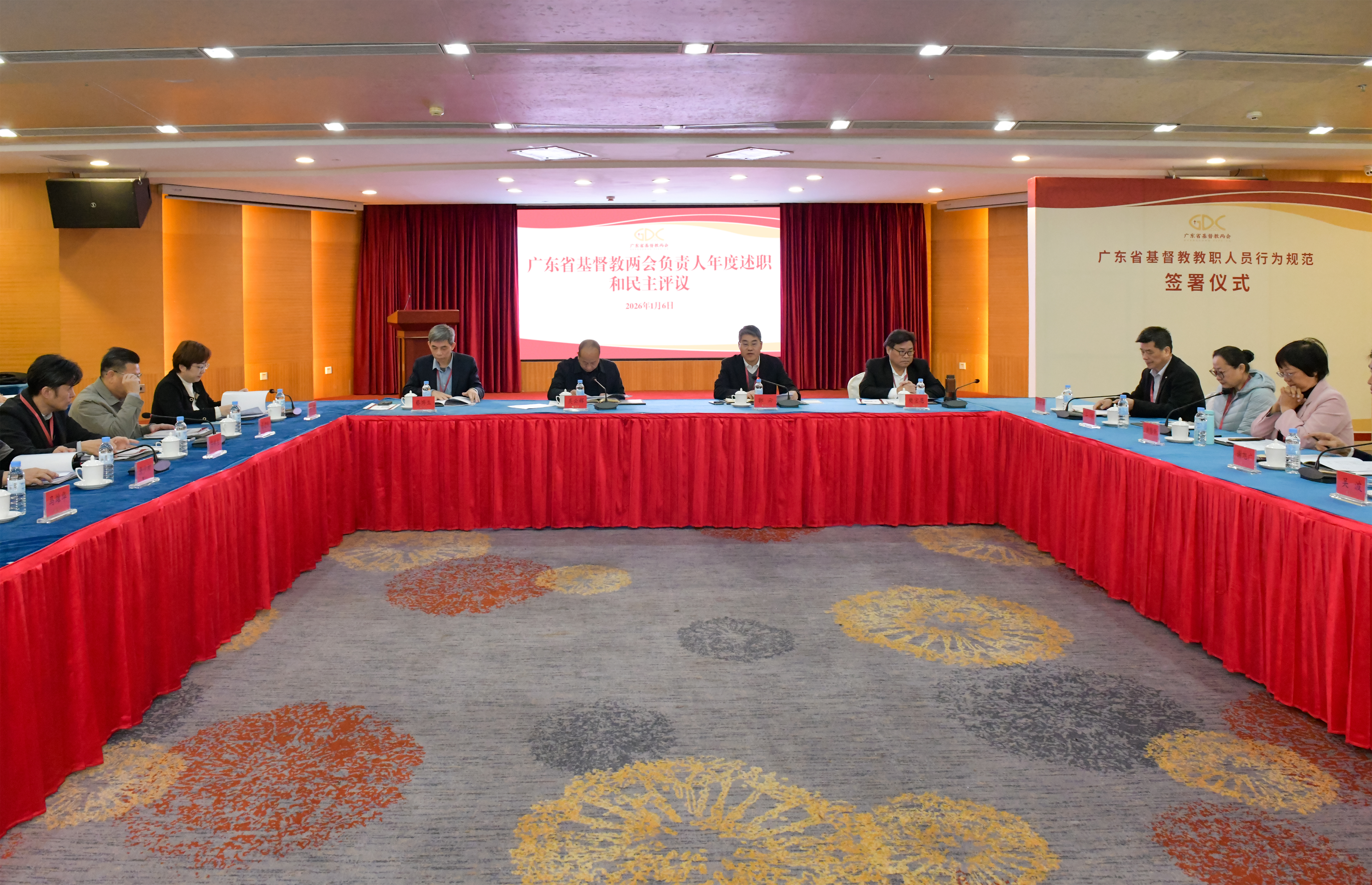 在广东省基督教两会负责人年度述职与民主评议会上,广东省基督教三自爱国会主席郭云牧师、广东省基督教协会会长蔡博生牧师等14位领导班子成员,围绕一年来的履职情况、工作成效、存在问题及未来规划等方面,向全体常务委员作了年度工作述职。与会常委认真听取了口头述职、阅读书面述职,并通过电子小程序以无记名方式对述职人员进行了民主评议。此项工作是加强团体自身建设、推动负责人履职尽责、锻造高素质领导班子的重要举措。