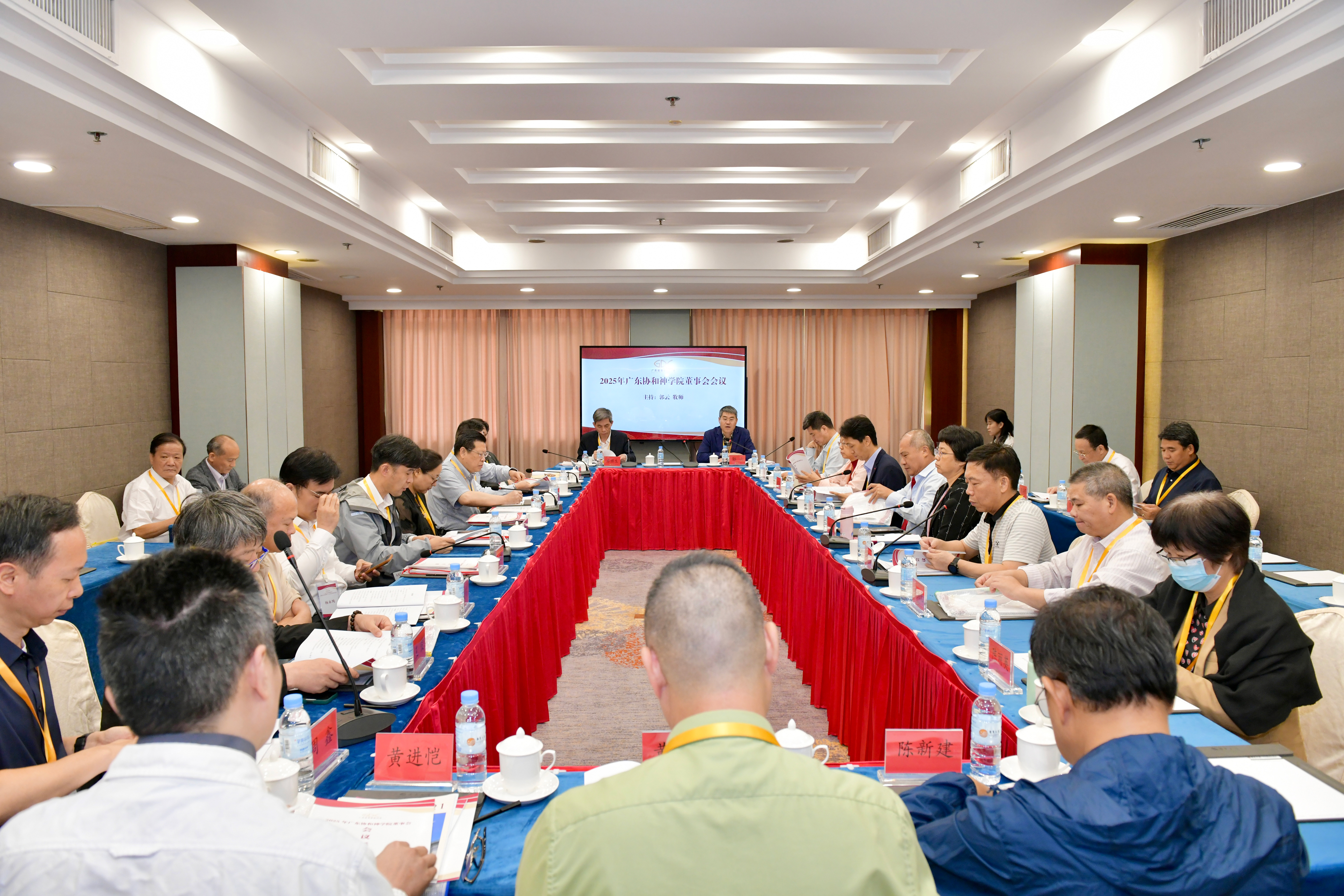 广东协和神学院董事会会议听取并讨论《广东协和神学院2025年工作计划》,审议通过《广东协和神学院章程(2025年修订稿)》。会议强调,神学院要严格对标全国宗教院校评估要求,深化内涵式发展,优化课程体系、强化师资建设、加强内部管理,提升办学水平,努力为我省基督教事业培养爱国爱教的基层教牧人才和高层次“双通”人才。