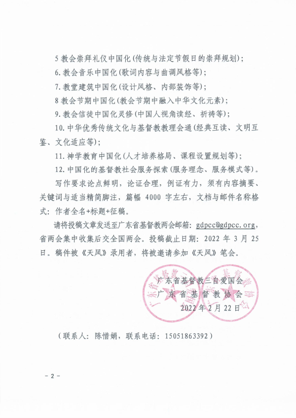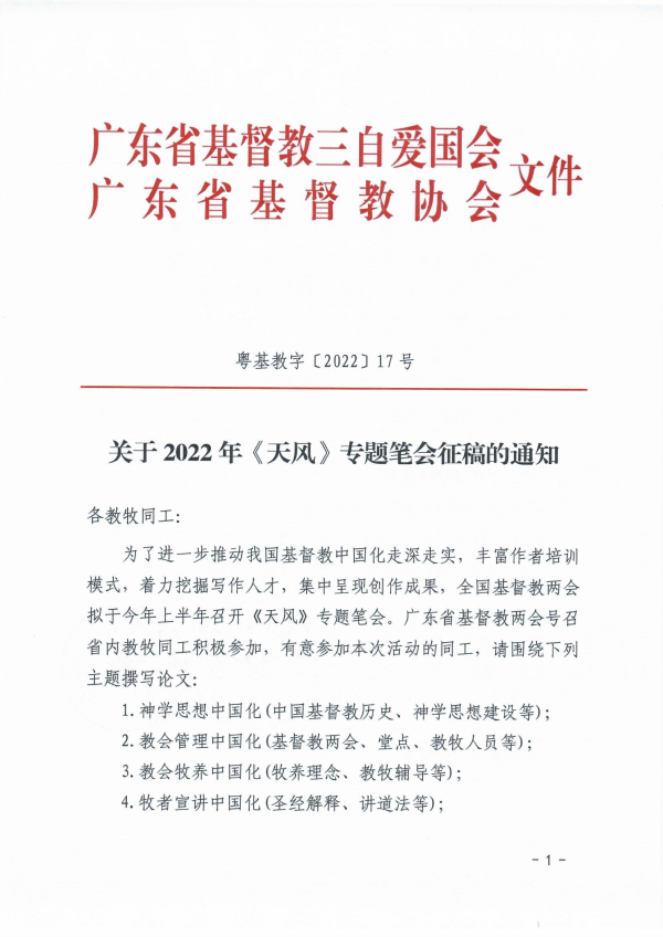 关于全国基督教两会《天风》专题笔会征稿的通知