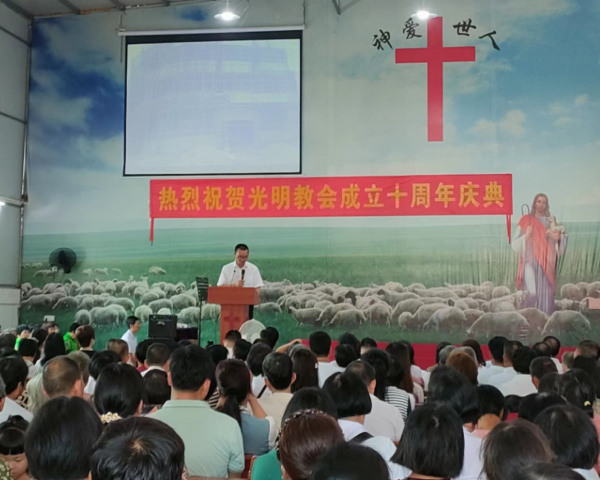 2023年8月26日上午,河源市基督教光明聚会点举行了成立十周年庆典活动。广东省基督教三自爱国会主席樊宏恩牧师、河源市基督教三自爱国会主席兼协会会长刘仕芳牧师出席庆典活动并致辞祝贺。来自河源市各县、区教会的教牧同工和弟兄姐妹约640人欢聚一堂,共沐主恩。