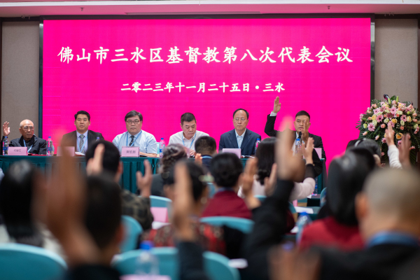 教会逢喜事,初冬亦温暖。2023年11月25日,佛山市三水区基督教第八次代表会议在三水狮皇花圆酒店顺利召开,广东省基督教三自爱国会主席樊宏恩牧师、广东省基督教协会常务副会长雷玉明牧师、佛山市基督教两会主席彭平牧师、佛山市三水区区委统战部副部长、区民族宗教事务局局长何伟全莅临会议。