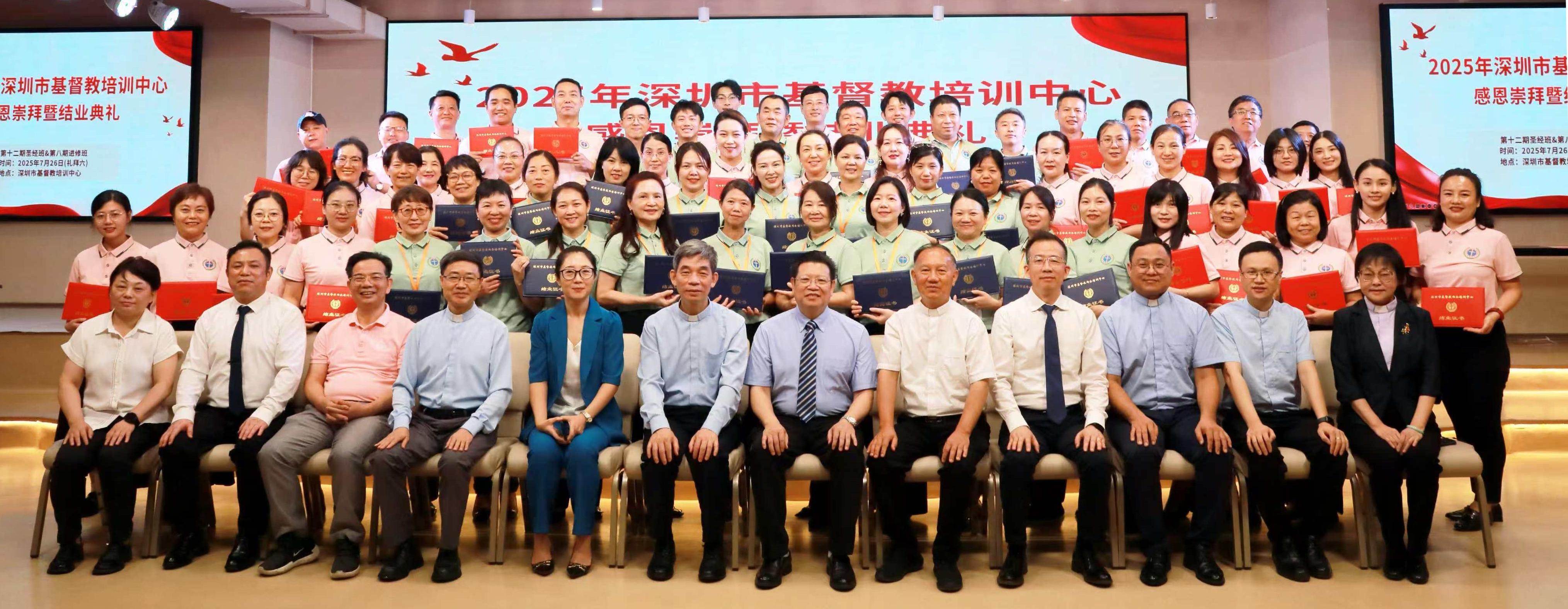 7月26日,深圳市基督教培训中心举行2025结业感恩崇拜暨结业典礼。广东省基督教两会、广东协和神学院、深圳市委统战部(市民族宗教局)相关领导,以及深圳市基督教两会班子成员等嘉宾与师生共同见证这一时刻。本期培训共有41位圣经班学员、26位进修班学员顺利完成学业。
